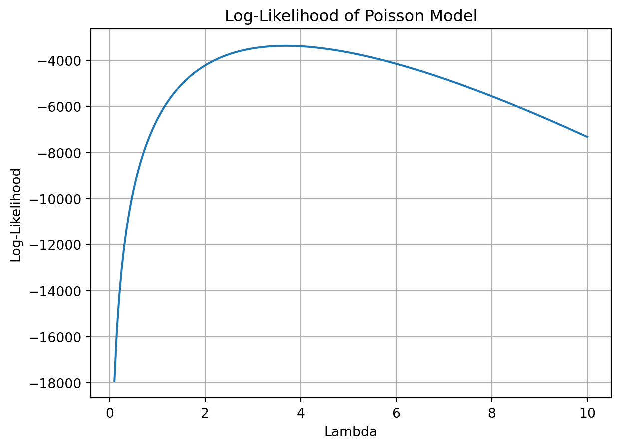 This is the log-likelihood expression we will use to estimate ( ) in our simple Poisson model.